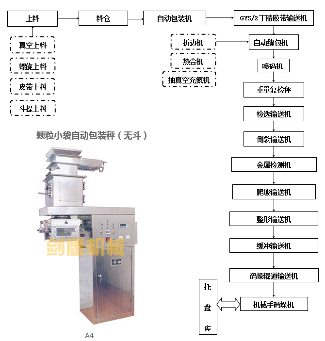 適用范圍 尿素、復肥、味精、塑料粒子、聚丙烯、礦砂、食品添加劑等顆粒物料的包裝生產(chǎn)線